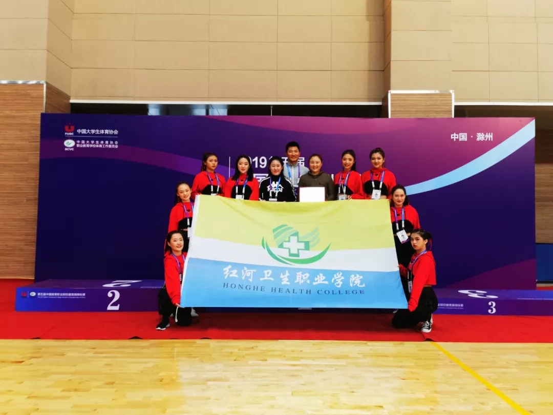 2019年11月9日-13日,我校操舞队参加了第五届中国高等职业院校健美操锦标赛,获得了“自编街舞”三等奖、“2017年啦啦操竞赛规定动作花球(大学组)”三等奖的优异成绩,黄庭薇同学获得优秀运动员称号。