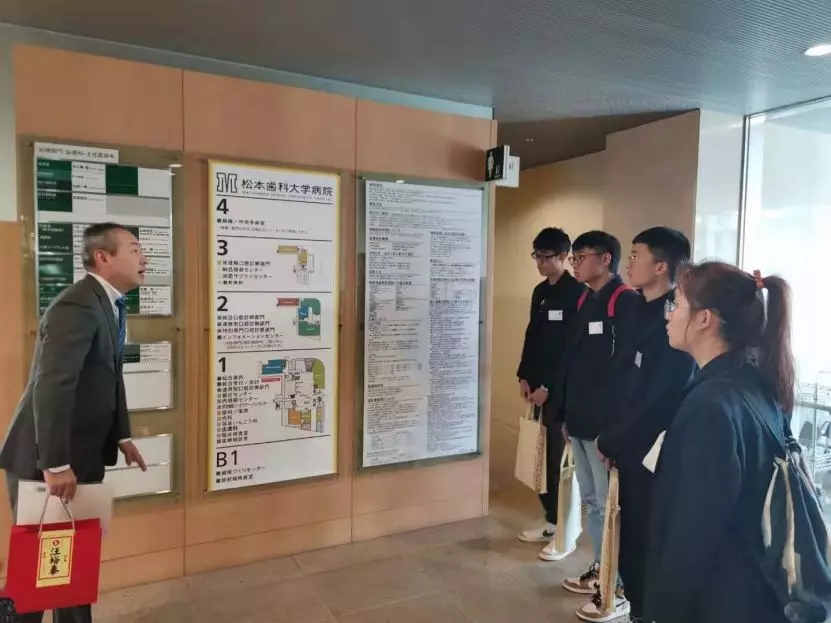 12日上午,我校师生来到长野县松本市齿科大学参观,首先参观了松本齿科大学附属医院,每个科室的就诊程序完善,就诊环境舒适,整个医院都是电子智能化就诊,该校的杨静博士带领我校师生参观整个学校设施设备和教学环境,分享了学校的教学理念,以及专业课程设置等,同时观摩了在线二年级学生上课(实训实验课),整个过程同学们都认真和在校学生了解沟通,收获满满!