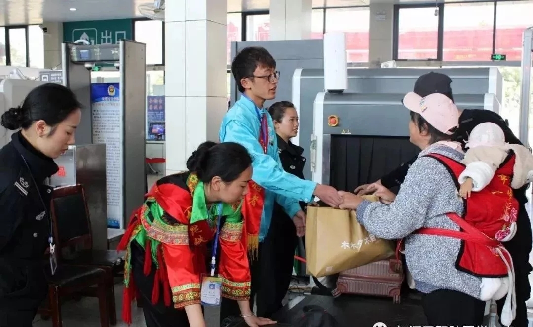 2020年1月10日上午,2020年“暖冬行动”春运志愿者服务活动启动仪式在蒙自站广场举行。