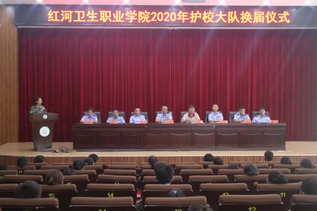 2020年7月3日下午,我校护校队全体成员在图书馆报告厅举行了隆重的换届仪式。学院党委书记张云学,保卫处全体老师、护校队和消防志愿者服务队全体队员,学生会相关部门人员参加换届仪式。