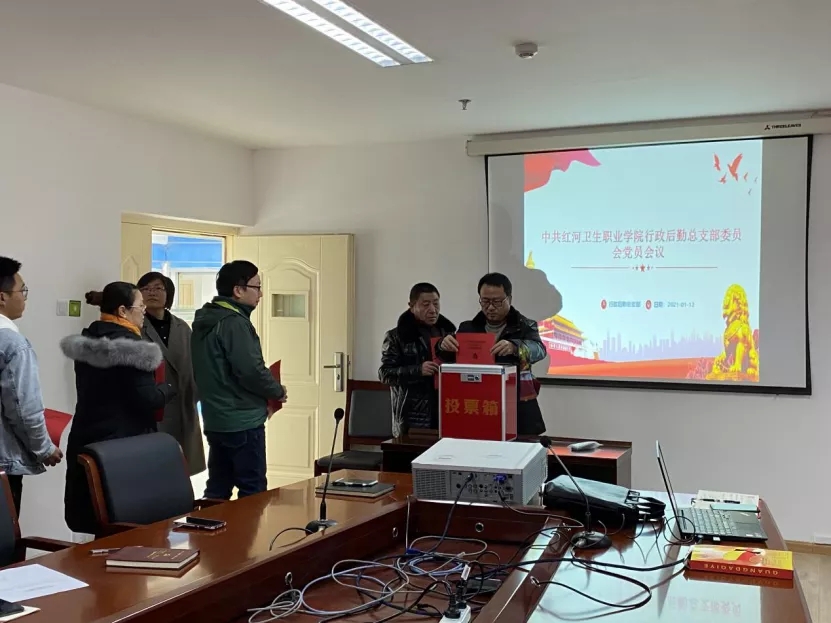 2021年1月12日上午,行政后勤党总支在校务管理中心九楼第二会议室召开党员大会,成立行政后勤党总支部委员会。36名党员参加会议,大会选举产生中国共产党红河卫生职业学院行政后勤总支部委员会委员、书记、副书记。
