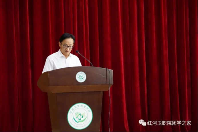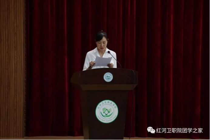 校团委书记范瑜宣读《共青团红河卫生职业学院委员会关于表彰2020年“五四红旗团委、五四红旗团支部、青年五四奖章、优秀共青团干部、优秀共青团员、优秀青年志愿者”的决定》。对在2020年学校共青团工作中涌现出的一大批优秀集体和先进青年典型进行表彰。