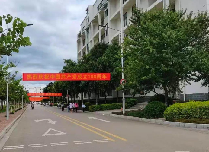 在中国共产党成立100周年之际,红河卫生职业学院在全校广泛开展主题活动、文艺演出、宣讲报告等系列活动,庆祝中国共产党成立100周年氛围浓厚。学院高度重视,全面动员、全面部署党史学习教育氛围营造工作,积极开展广泛宣传。看,校园里到处是“中国红”。