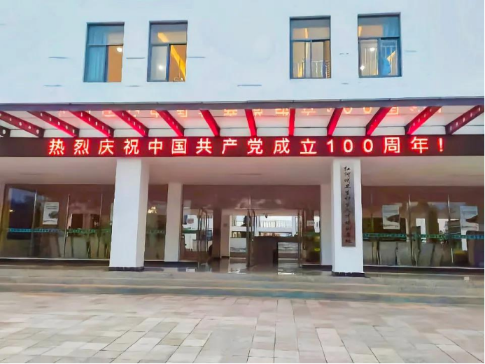 截至目前,全校悬挂标语15条、设置宣传栏20块、校内主要道路设置20余组杆旗,悬挂国旗和建党100周年标识40面,共计3块LED显示屏滚动播放宣传标语,开辟《中国共产党百年历史大事》《红河历史》党史学习教育宣传长廊。