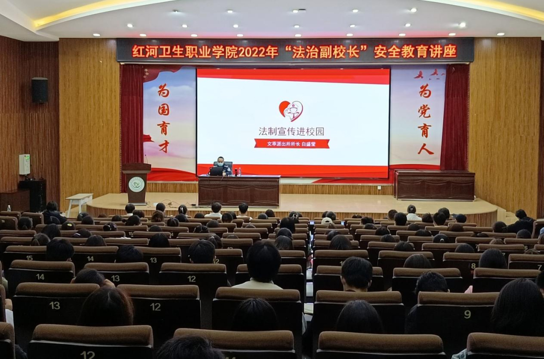 2022年11月20日,我校保卫科邀请蒙自市文萃派出所所长白盛莹到校开展2022年“法治副校长”安全教育讲座。我校护校队全体人员和在校班级保卫委员、心理委员参加活动。白所长在图书馆二楼报告厅采用“案例+视频”的方式为同学们上了一堂生动的法治宣传进校园安全教育课。讲座中他详细讲解了“电信网络诈骗”、“校园贷”、“杀猪盘”以及“如何防止性侵害”等案例的典型性和危害性,希望同学们不断加强安全知识的学习,牢固树立安全防范意识。