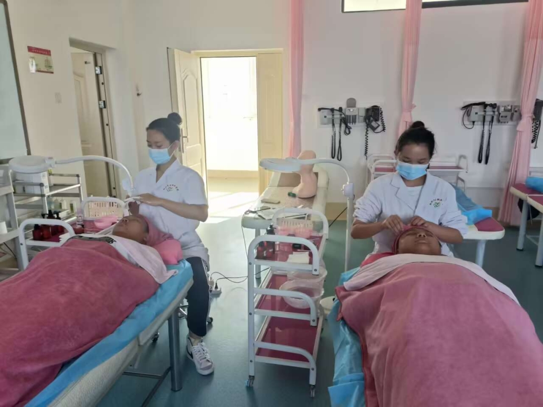 这是自2019年医学美容技术专业开办以来,师生们第一次参加全国性技能比赛。为了在比赛中取得优异的成绩,备赛过程中指导老师沈小敬严格按赛项的三个核心模块细则(皮肤分析与方案制定、面部按摩、面膜养护)指导选手,要求每个选手科学地辨识与分析顾客的皮肤,并制定出护理的方案及护理要点。这就要求参赛者从三个角度出发:第一,模拟专业皮肤医生为顾客做皮肤的诊断;第二,模拟专业顾问进行问询精准找到顾客的需求;第三,模拟专业美容师,进行专业规范的操作。