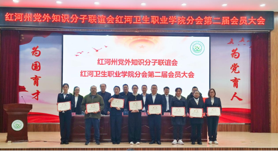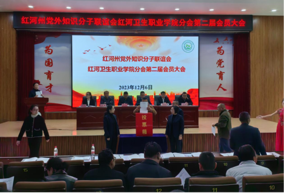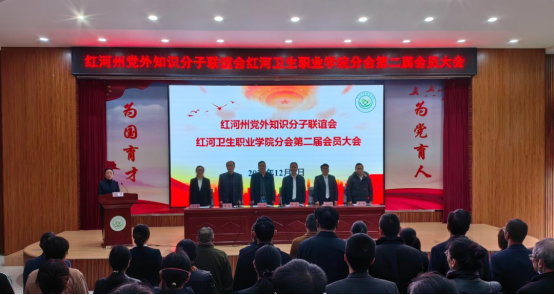 2023年12月6日下午,红河州党外知识分子联谊会红河卫生职业学院分会第二届会员大会在学校图书馆报告厅举行。红河州委统战部副部长杨晗、红河州党外知识分子联谊会会长布小继,学校党委书记王必成,党委副书记、院长唐飚,党委副书记周云雄出席会议。