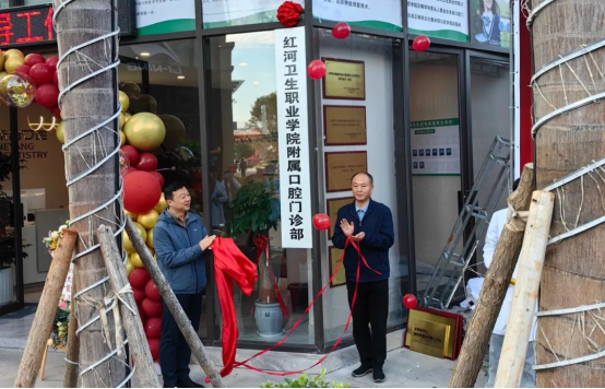12月12日上午,红河卫生职业学院附属口腔门诊部在柒彩滇南第一城10幢商铺揭牌,党委副书记、院长唐飚,党委委员、副院长李锋出席揭牌仪式。