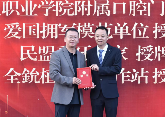 蒙自禾阳口腔门诊部为陈平(左)等9位老师颁发了聘书。