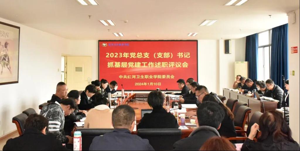 为深入学习贯彻习近平新时代中国特色社会主义思想和党的二十大精神,全面检验学校各基层党组织书记一年以来抓基层党建工作情况,2024年1月10日,中共红河卫生职业学院委员会在图书馆第一会议室召开2023年度基层党总支(支部)书记抓基层党建工作述职评议会。会议由学校党委书记王必成主持,党委班子成员、各党总支(支部)书记、“两代表一委员”、基层党员干部和群众代表参加会议,指导组组长、州融媒体中心数字媒体编辑部主任倪琴,指导组组员、州委组织部一级科员赵钰荷到会指导。