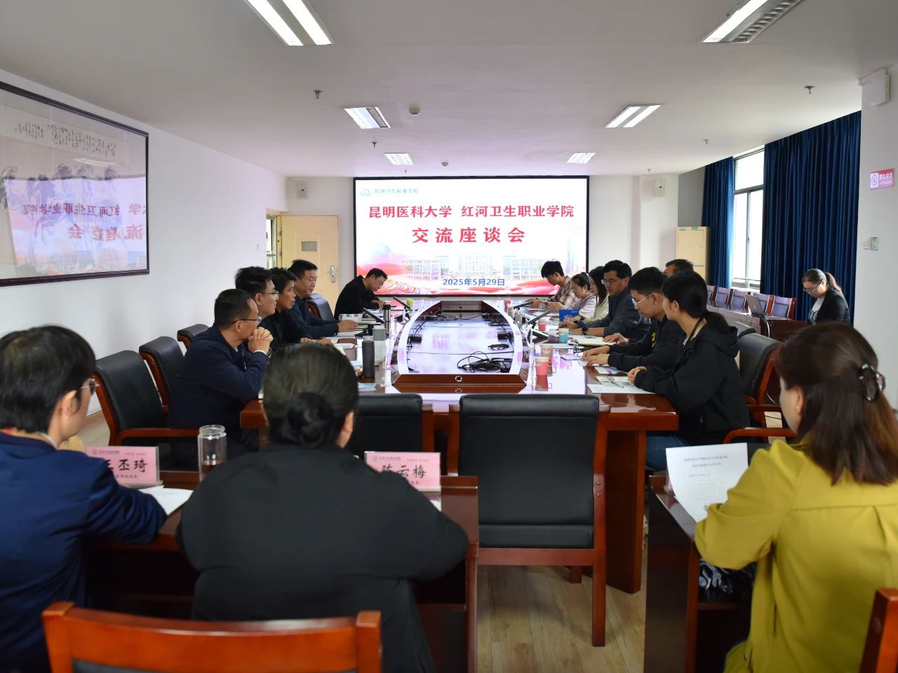 为深化两校合作,共谋医学教育发展,2025年5月29日上午,昆明医科大学党委常委、副校长徐立,基础医学院党委书记邹智荣一行到访红河卫生职业学院,同学校党委副书记、院长唐飚,党委副书记周云雄等校领导及相关部门负责同志就人才引进、科研及高本贯通培养等方面开展深入交流。