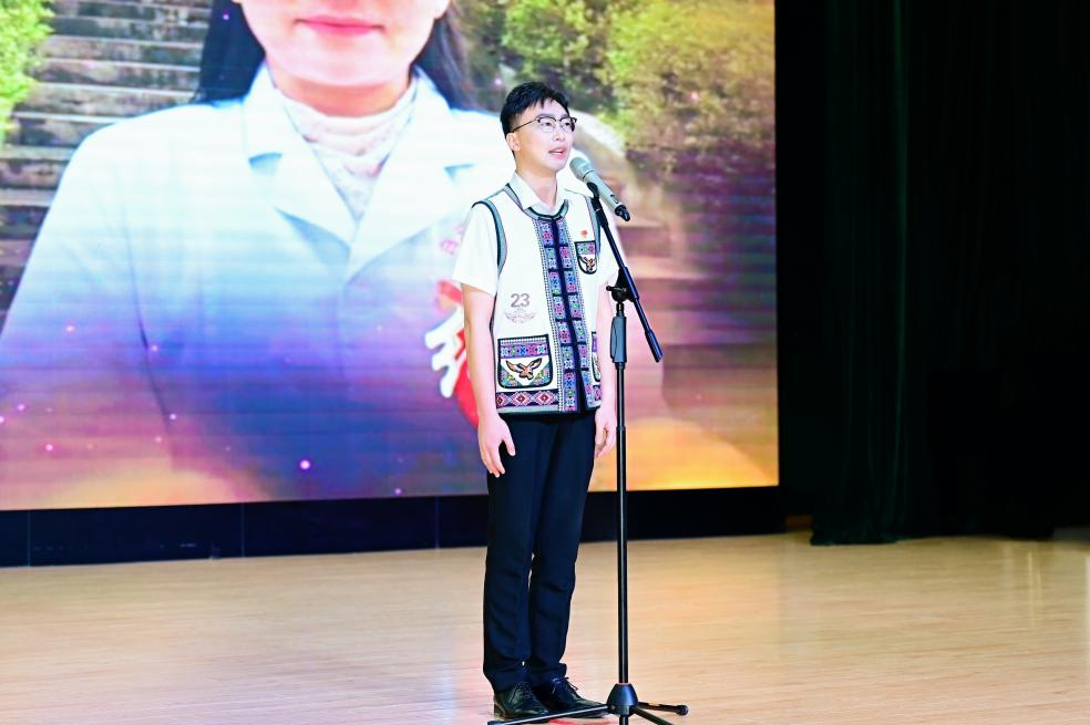 普漪漪同学以《生命之光筑梦行云岭丹心铸同心》为题,讲述白俊美院长扎根云岭、守护各族同胞健康的故事,诠释“云岭儿女心向党”的赤诚,彰显铸牢中华民族共同体意识的担当。