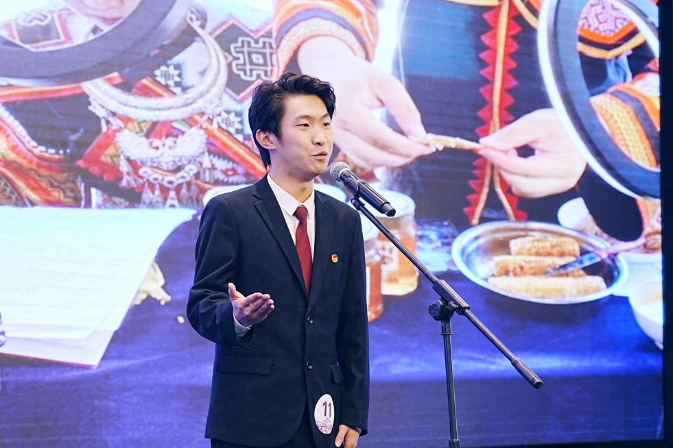 吴季原同学以《云岭青春赴苗乡:健康卫士的使命与担当》为题,结合学校双轮帮扶湾塘乡的情况、90后教师双语助农的事例,以及个人基层实践经历,生动讲述了红卫师生扎根苗乡、以青春之力铸牢中华民族共同体意识的责任与担当。