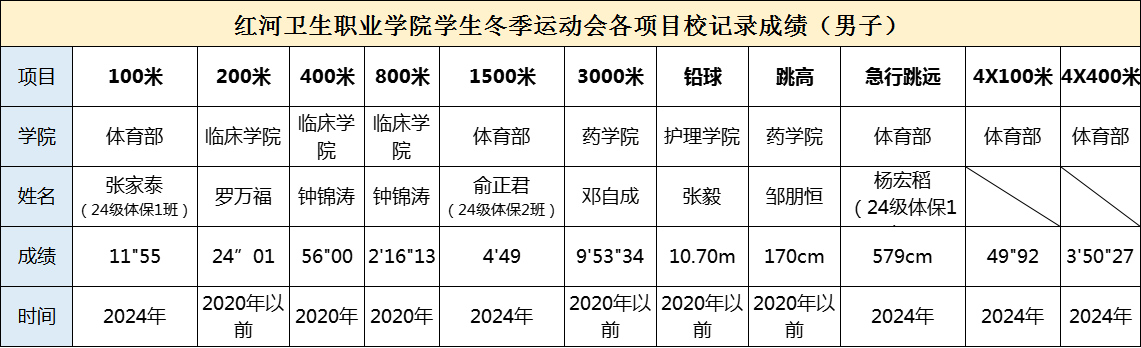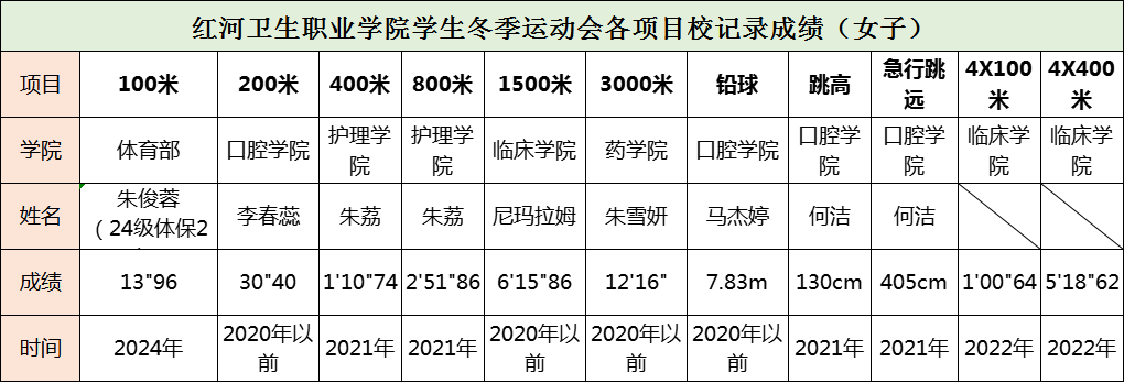 径赛项目(男女):100米、200米、400米、800米、1500米、3000米