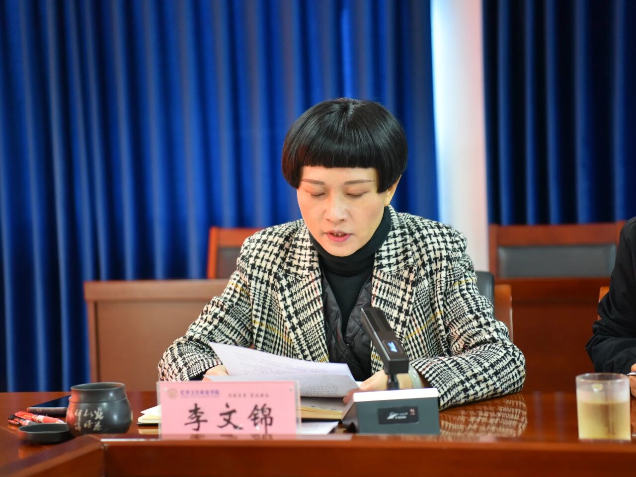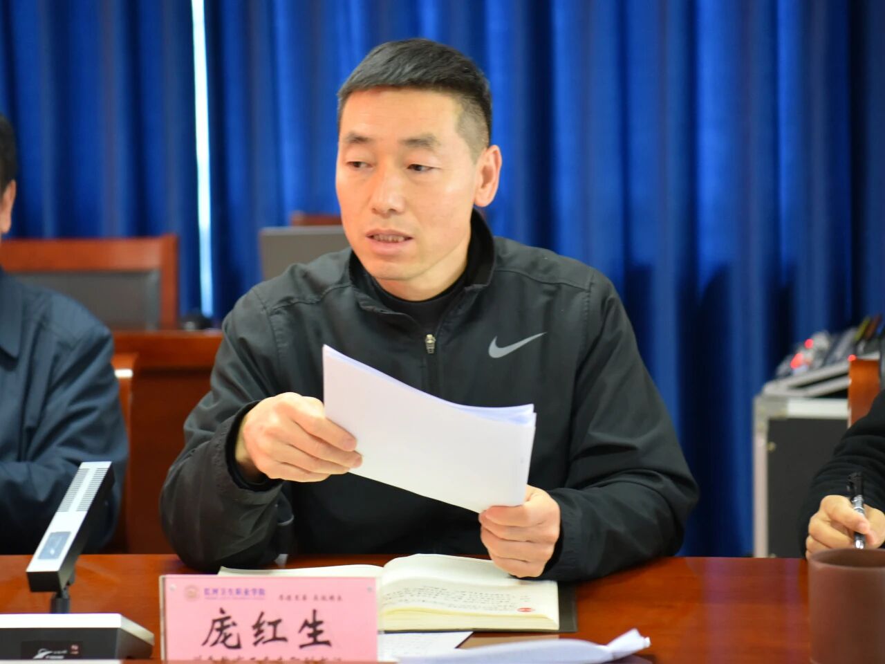 2025年11月26日,学校举行党委理论学习中心组第8次集中学习,深入学习贯彻党的二十届四中全会精神。党委委员参加学习,各党总支(支部)、各部门负责同志列席学习,党委书记王必成主持学习。州委教育工委专职副书记庞红生列席旁听。