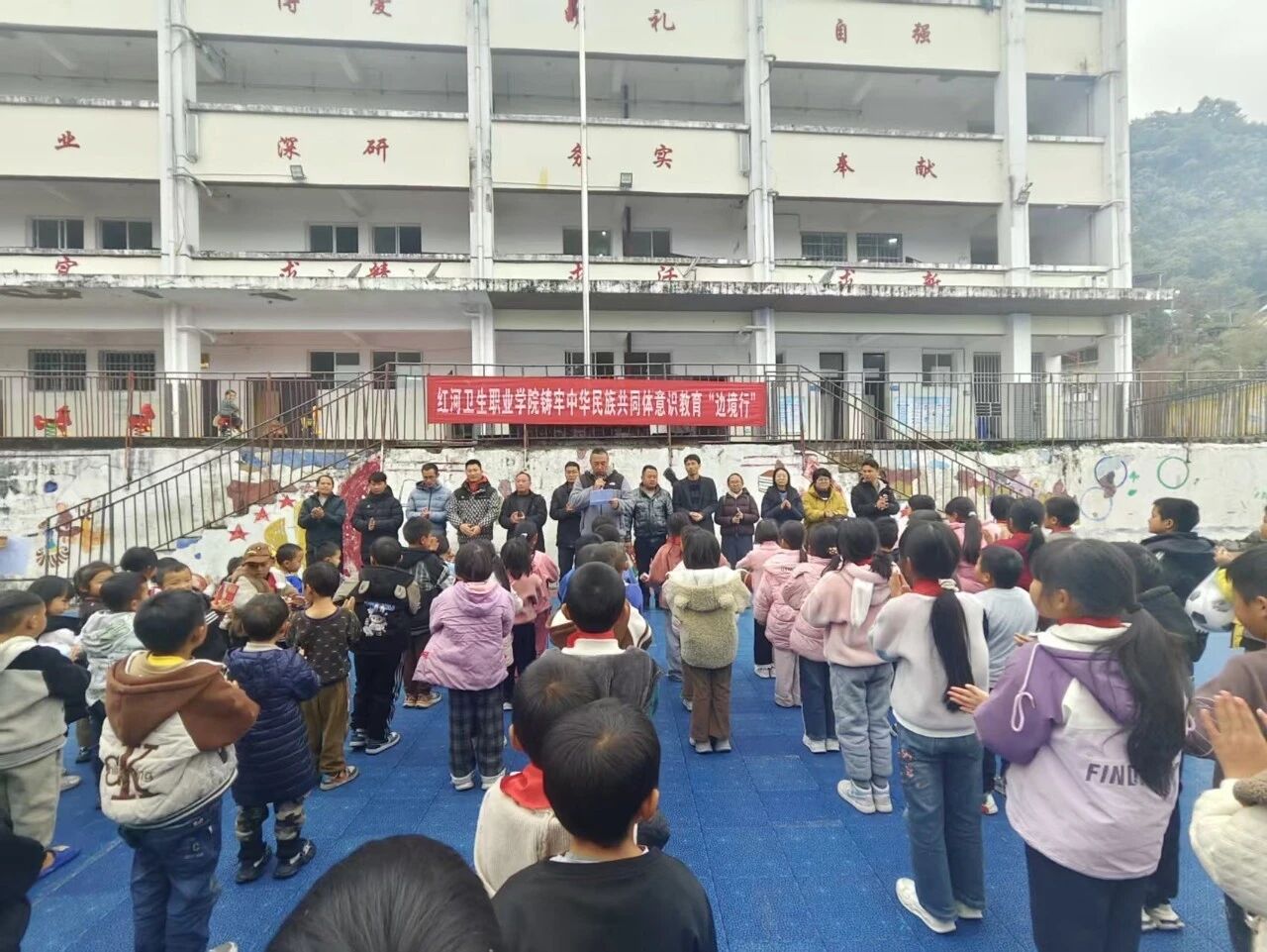 为扎实服务乡村发展,精准对接地方实际需求,1月9日,我校体育部党支部、临床与公卫学院党总支联合统战部、关工委、校团委赴屏边县湾塘乡大冲小学开展“联建共建·助力乡村振兴”健康文化“三下乡”活动。活动以健康促进、知识普及、文化铸魂为核心,通过多元化宣讲与实践互动,为当地师生送去关怀与支持,以实际行动赋能乡村教育发展。