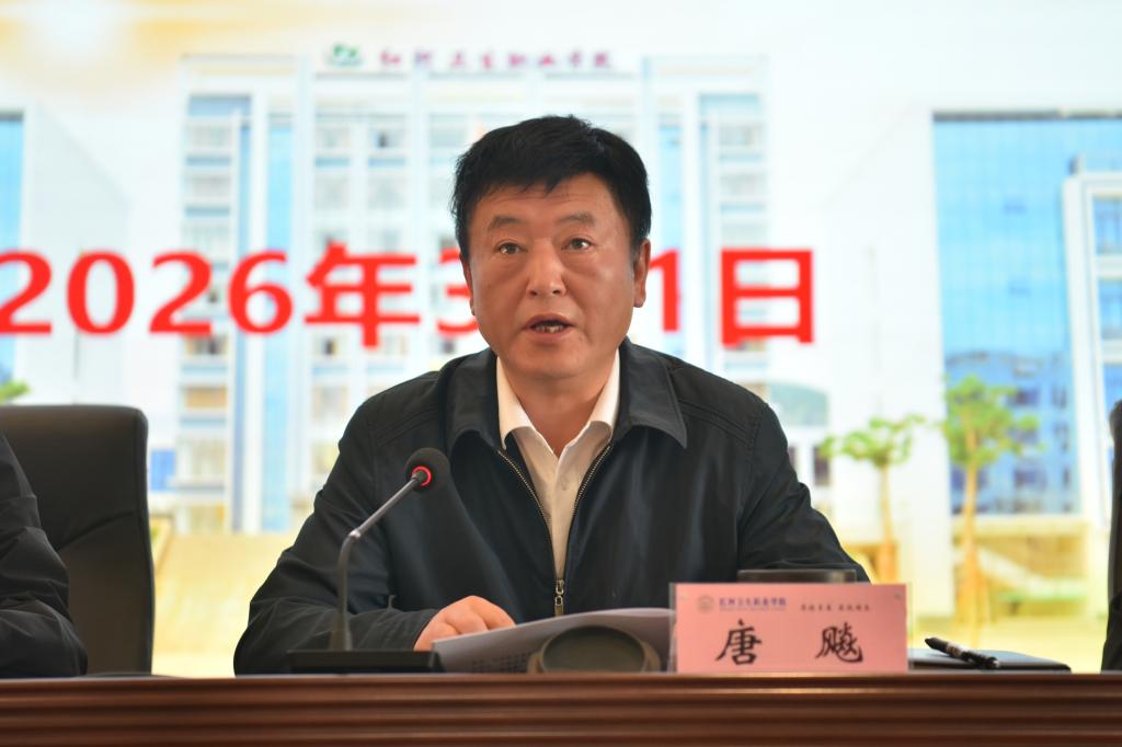 会上,唐飚院长传达了2026年全省教育工作会议关于职业教育发展的核心精神。结合学校发展实际,唐飚院长向全体教职工提出三点希望与要求:一是锚定升本攻坚目标,在“十四五”圆满收官基础上,紧抓“十五五”发展机遇,直面医学类高职发展挑战,凝心聚力朝着升本目标稳步迈进; 二是筑牢内涵发展根基。抓实科教兴校,深耕教研、打造精品在线课程;聚力产业强校,推动各二级学院建成产业学院、实现产教同频;做优专业立校,动态调整专业结构、超前布局紧缺专业;厚植爱校作风,以“爱校如家”情怀主动谋划,扎实做好办学能力评估等重点工作准备; 三是护航学校平稳发展,牢固树立底线思维,全面排查整治各类安全隐患,密切关注学生思想动态和心理健康,抓实校园安全各项工作,为学校发展筑牢安全防线。