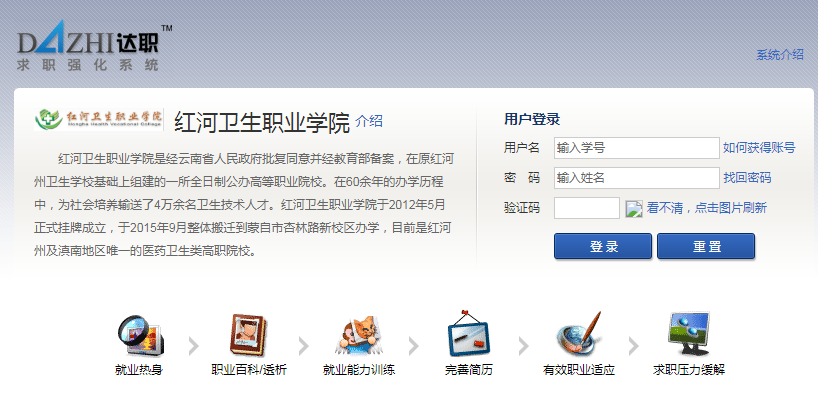 达职求职强化系统是国内第一款就业辅助系统,是面向高校毕业生培养其职业化意识与行为习惯,引导其完善求职过程中的职业化行为与态度,并形成更有效的求职技巧的训练平台;是针对大学毕业生的求职能力提升的辅导系统。达职求职强化系统分为就业热身、职业百科/透析、就业能力训练、简历诊断、有效职业适应、求职能力缓解六大板块,通过以上模块的训练,提升学生求职能力和职场适应力,疏解学生求职压力,培养其职业化意识与行为习惯,引导其完善求职过程中的职业化行为与态度,并形成更有效的求职技巧的训练平台。