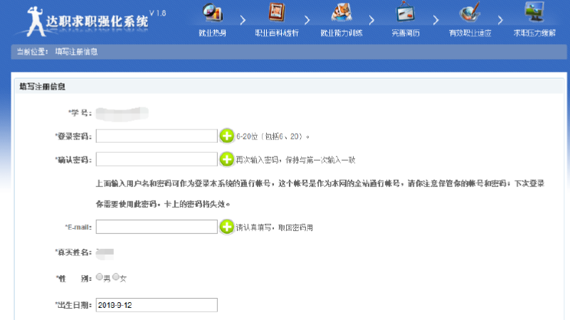 1、用户应完善个人信息后,才能进行测试。请各位同学牢记系统密码,以免对后续工作产生不必要的麻烦。