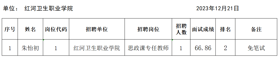 红河卫生职业学院2023年招聘编外工作人员体检递补人员名单