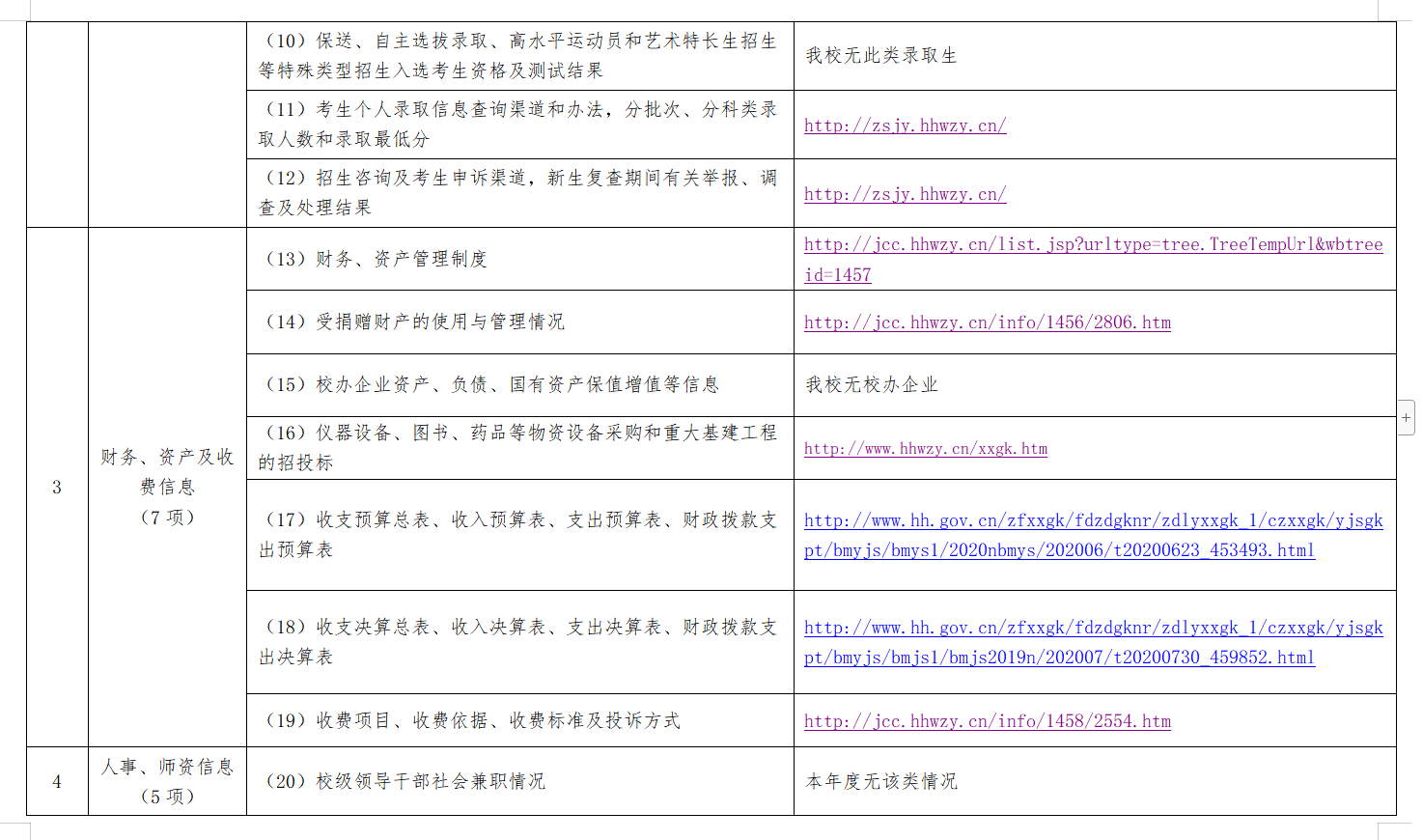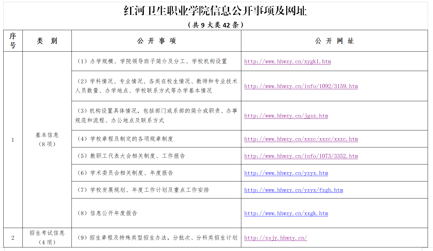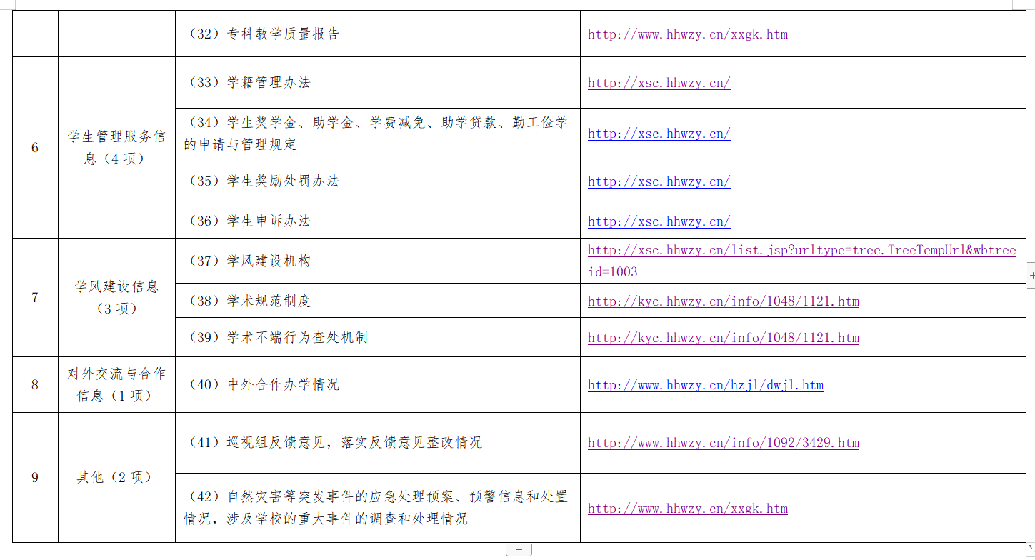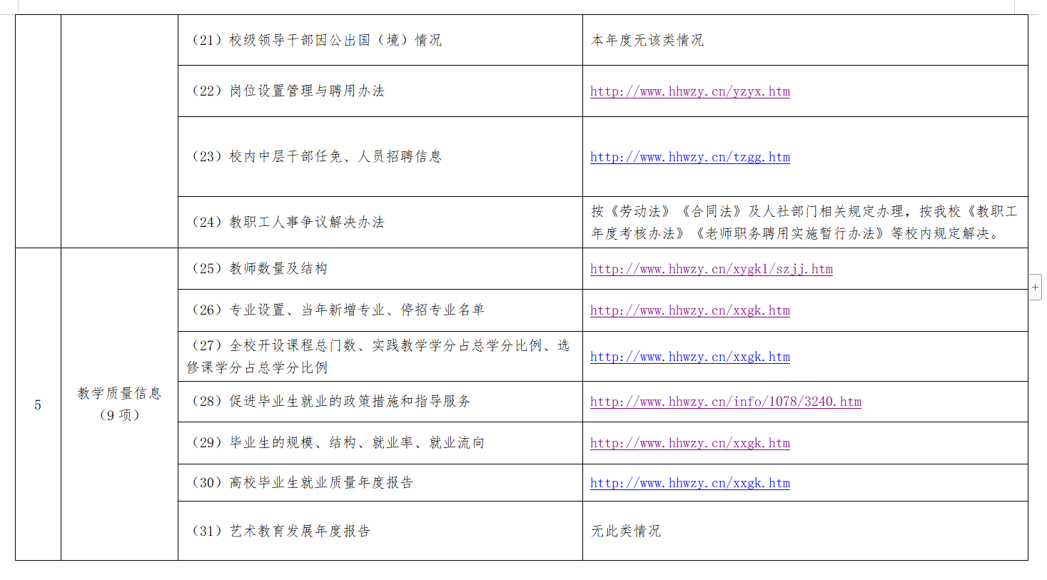 我校2020年1月在学院官网发布了《红河卫生职业学院高等职业教育质量年度报告(2019)》,内有在校大专学生人数、专业设置、当年新增专业、停招专业、开设课程数等教学情况介绍。学院教务处2019年优化了部门网站,对学校学籍管理办法、转专业管理规定等制度进行了公开。
