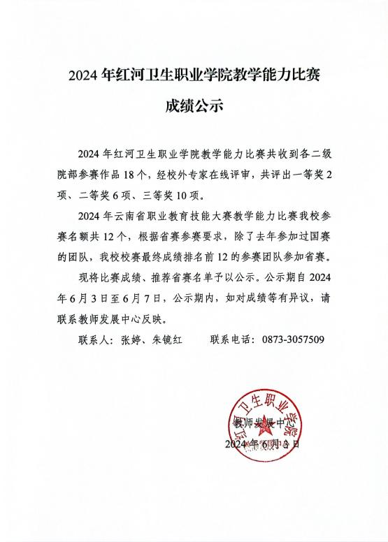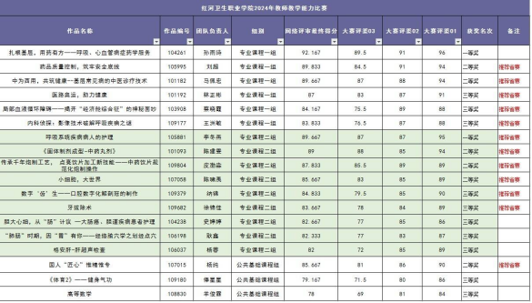 2024年红河卫生职业学院教学能力比赛成绩公示
