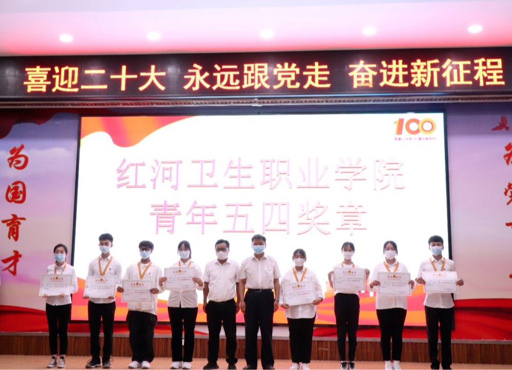 2022年是中国共青团成立100周年,在全国上下喜迎党的二十大之际,共青团红河卫生职业学院委员会于2022年4月28日晚召开了“喜迎二十大 永远跟党走 奋进新征程”主题教育实践活动——“青春献礼二十大 强国有我新征程”五四表彰大会。学校党委书记张云学、党委副书记周云雄,校团委、学生科负责人,各二级学院分管和负责团委工作的负责人,受表彰的集体和个人代表共280人参加大会。
