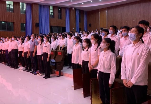 最后,大会在慷慨激昂的《光荣啊中国共青团》团歌中,落下帷幕,嘹亮的歌声表达了同学们传承和发扬光荣传统的坚定信念,向英雄学习、向前辈学习、向榜样学习,不负韶华、不负时代、不负人民,在青春的赛道上奋力奔跑,争取跑出当代青年的最好成绩!