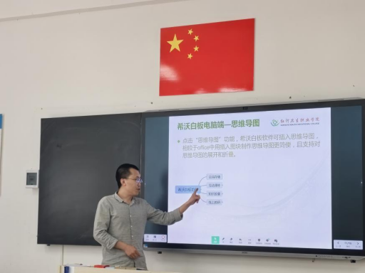 会议的第二项议程,更是吸引了与会者的广泛关注。这是一场关于数字化转型教学工作的交流会。首先,林正彬老师为大家详细介绍了希沃白板的使用方法,包括其基础功能和特色功能,林老师说可以通过思维导图、插入课堂活动以及知识胶囊等功能增添课堂的趣味性,让枯燥的医学基础知识变得更加的生动形象。除此以外,对于教师来说,还可以在希沃白板上组织集体备课,解决时间和地点的限制。总之,林老师通过生动的案例和实践经验,展示了希沃白板在教学中的独特优势和实际应用效果,引发了在场教师的浓厚兴趣和热烈讨论。