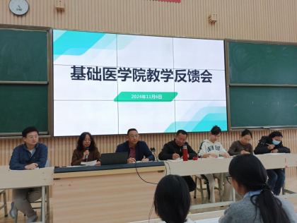 2024年11月6日下午,基础医学院在图书馆大教室一召开2024-2025学年第一学期期中教学反馈会,基础医学院教师党支部书记陈冬云、院长杨兴文、副院长田晓露、教学秘书、各教研室主任以及来自各二级学院的学生代表100余人齐聚一堂,共话教学相长。