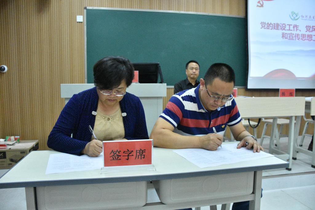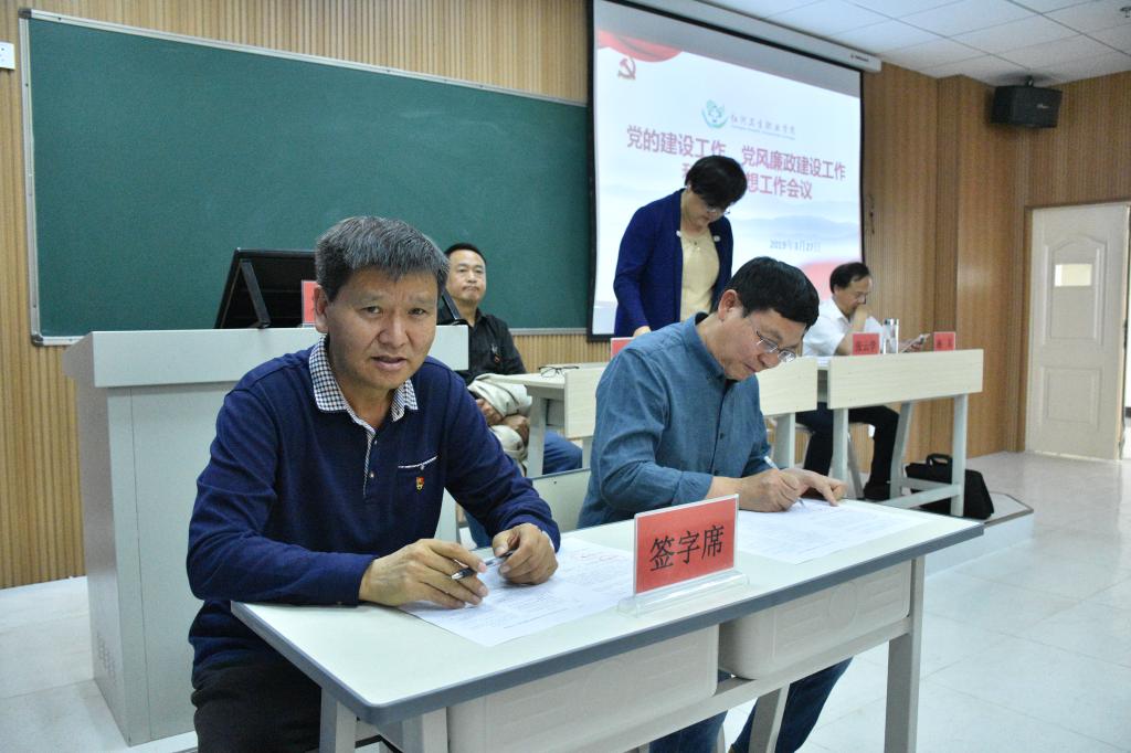 2019年3月27日下午,学院召开党的建设工作、党风廉政建设工作和宣传思想工作会议。各二级部门与学院签订党风廉政建设等工作责任书。
