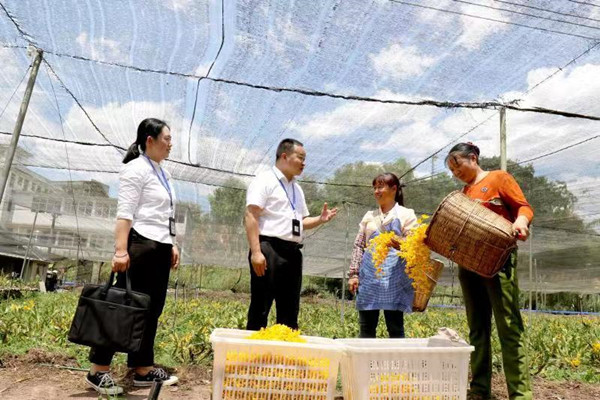 图为王廷建(左二)在南屏镇南岛河村石斛种植基地向种植户核查相关问题线索。旺珍 摄