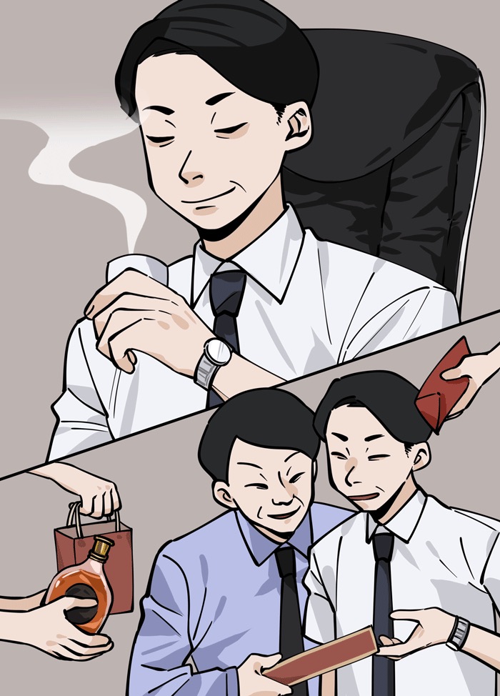 面对“好朋友”的嘘寒问暖、吹捧逢迎,汪鹰开始忘记执法者的身份,时常到“朋友”办公室坐坐、喝茶聊天、吃饭喝酒,这些人也会时不时拿点香烟好酒相送,汪鹰想着“大家都是朋友,吃个饭拿条烟都是很正常的事儿”。