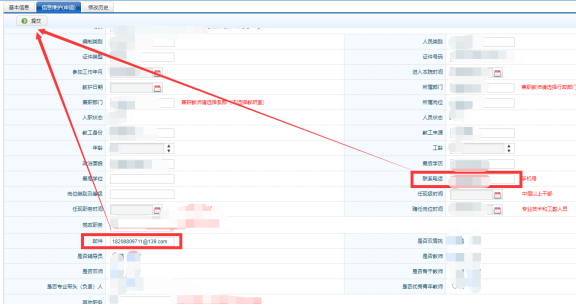 四、进入人事系统后,依次单击 “个人信息”→“信息维护(申请)” →“修改”,然后补充邮件和联系电话的信息后,点击左上角的“提交”,提交后“信息维护(申请)”会变为“信息维护(待审核)”,待人事科审核通过后,个人信息的完善即为成功。预计1个日历日后,各位教师可通过电子邮箱找回个人的数字校园密码,不再需要人工介入。
