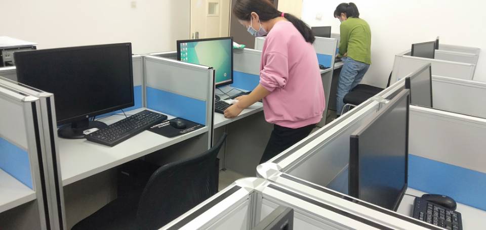 4.我中心人员持续密切关注疫情防控,做到定期对8间计算机实验室每台计算机使用酒精对桌面、键盘、鼠标进行消毒,使用84消毒液对座椅进行消毒。今年以来,把环境卫生清洁、防御工作落到了实处。