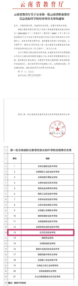 为推进“职业教育提质培优行动计划”,加快职业学校信息化建设,云南省教育厅于近日公布了第一批云南省职业教育信息化标杆学校培育单位名单,红河卫生职业学院经过自愿申报、省级教育行政部门专家遴选、公示等环节,与全省其他20所职业学校一同被列为云南省首批职业教育信息化标杆学校培育单位。