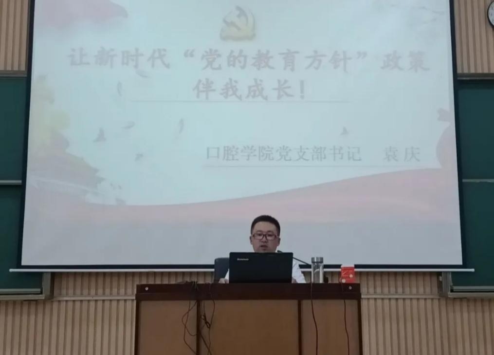 8月27日,为积极响应学校宣传统战部通知要求,口腔学院利用2021级新生开学之机,对2021级全体新生开展了党的教育方针宣传和学习活动,让口腔学院全体新生全面认识了新时代党的教育方针。本次活动由口腔学院党支部和学生工作部共同主导,由党支部书记袁庆展开主题教育和宣传,分别在实验实训楼报告厅和形态学楼报告厅举行。