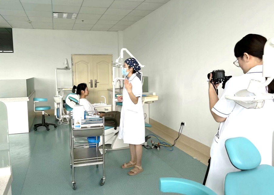 为全面落实口腔学院三教改革各项工作任务,深化口腔护理专业课程改革,不断提升口腔护理专业教学资料的统一性、规范性。口腔护理教研室于2023年6月5日上午在综合实训楼402开展课程资源建设—教学视频录制活动(第二期)。