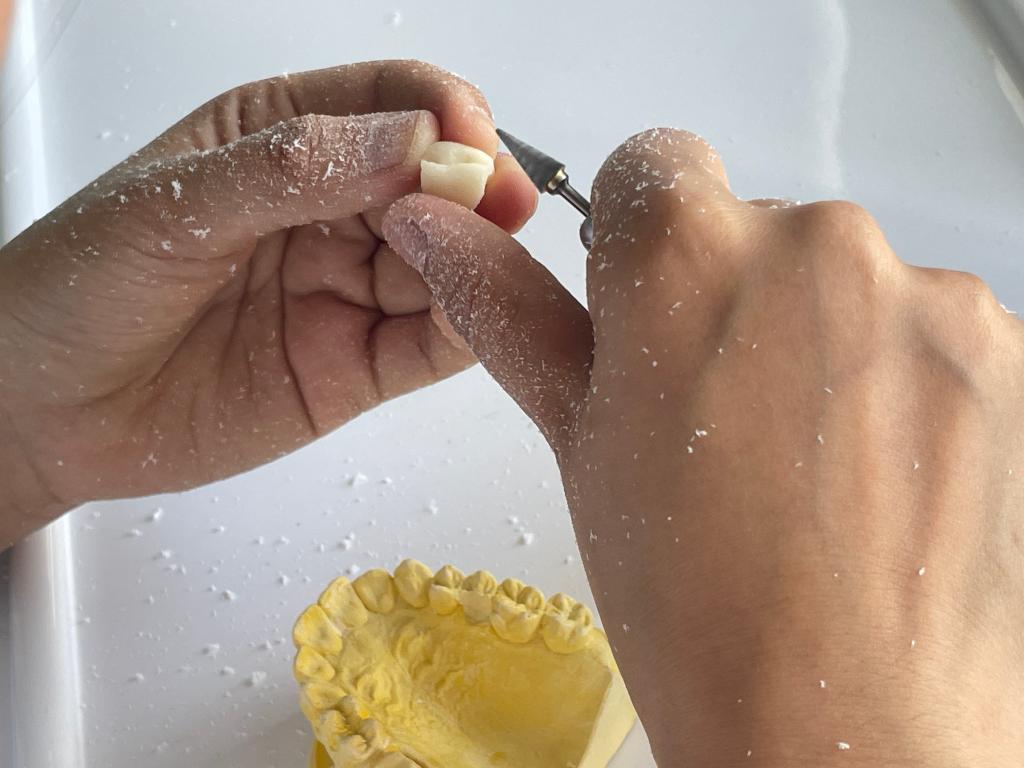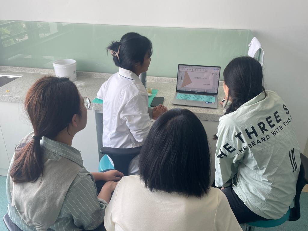 最后,教研室全体教师开展实操演练与互评交流,针对修复体边缘密合度检测、咬合面解剖形态恢复及表面抛光处理等关键技术环节进行标准化训练。通过"讲解-示范-实训-反馈"四位一体的教研模式,有效强化了教师团队的专业技能水平和教学实施能力。