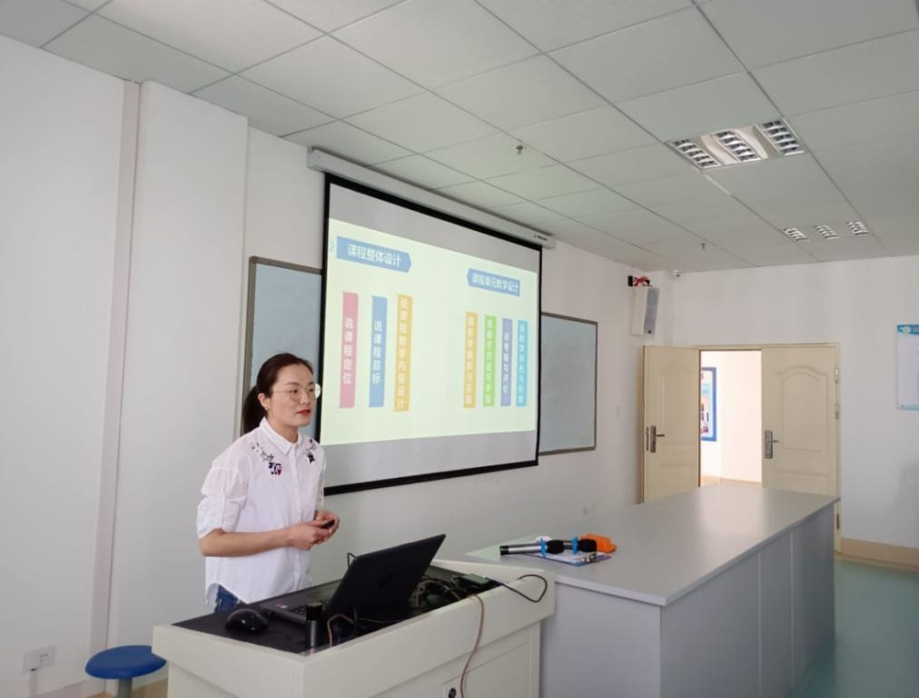 其次,说课教师吴雪莲从课程整体设计、课程单元设计等方面依次对《口腔内科学》进行课程说课,本门课程是口腔医学专业的核心主干课程之一,吴老师重点强调以学生为中心,采用“教、学、做一体化”和“离体牙训练—仿头模型训练—真人口腔内训练”工作过程系统化的教学模式,以培养口腔医学高质量专业技术型人才,从简单到复杂,逐级培养学生各方面的能力。