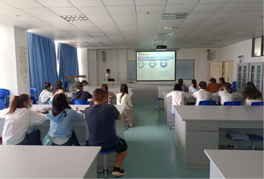 为进一步完善口腔专业群各门课程课程标准,全面提升口腔学院各专业人才培养质量,不断诊改各门课程教学过程中存在的问题,真正把教学改革落到实处。口腔学院于2022年4月13日下午在综合实训楼401举行了课程说课系列教研活动。本次课程说课的主讲教师是口腔学院党支部书记袁庆、口腔护理专业负责人吴雪莲。口腔学院全院教师参加了本次课程说课活动。