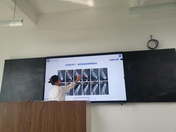 在本次活动中,戴应娟老师作为主讲人,她首先详细介绍了患者的初诊情况,包括一般口腔检查、口内照、模型分析以及影像学检查结果,使教师们对患者的基本情况有全面的了解。