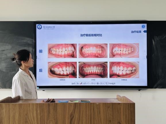 在分享过程中,戴老师通过展示正畸患者的I期、II期、III期治疗效果,体现了矫治技术实际应用的显著成效,为教师们提供了宝贵的临床经验和参考。
