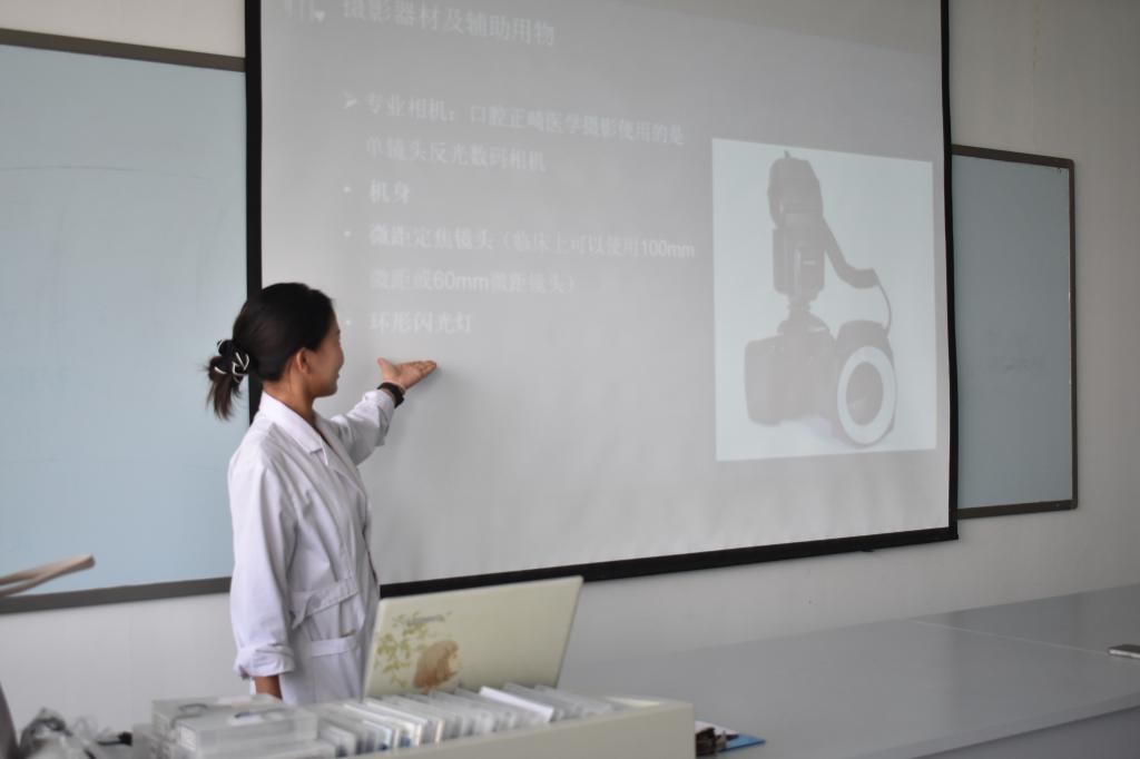 正畸面颌像拍摄培训:同日16时,口腔护理教研室在善工楼402开展正畸颌面像拍摄培训。戴应娟老师详细讲解了拍摄标准、设备调试及体位要求,并指导参训教师完成多体位实操练习,有效提升了教师临床影像采集能力。