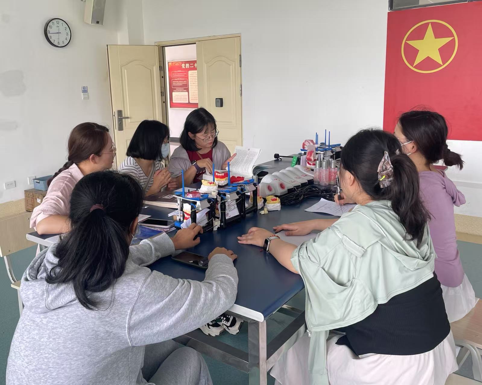 口腔医学技术教研室开展设备维护专项培训:6月25日,口腔医学技术教研室在善工楼503开展“设备使用与维护”专题教研活动。活动重点讲解了平均值(牙合)架与融蜡器的规范操作及日常维护要点,采用“理论+实操”模式,由李哲老师进行现场演示。通过深入研讨设备使用中的常见问题,有效提升了教师的设备应用能力,为实训课程质量提供了有力保障。
