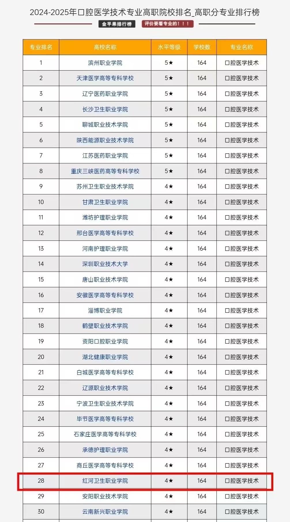 二、口腔医学技术专业金平果排名全省第一,全国第28位。