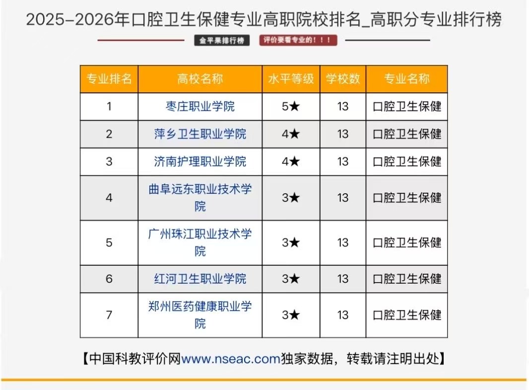 三、口腔卫生保健专业金平果排名全省第一,全国第6位。