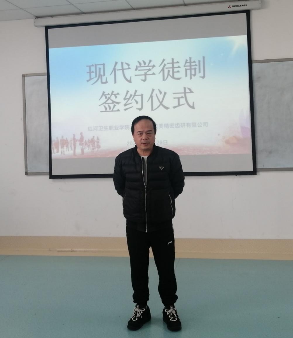 最后杨军副院长上台总结,表示现代学徒制培养人才是作为现代职业教育的一条有效途径,通过结合企业岗位将同学们所学的理论知识和企业的技术快速结合起来。本次拜师仪式也代表着我校和深圳新致美精密齿研有限公司踏上了一个新的征程,相信双方在新征程的道路会越来越好,共创辉煌。