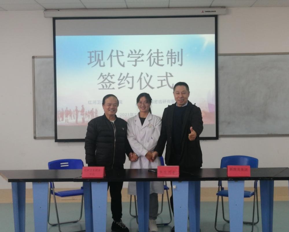 学徒精神一直都是我们中华民族的优良传统,生生不息的流传至今。如今的现代学徒制就是传统学徒制融入了学校教育的因素的一种职业教育,是职业教育校企合作不断深化的一种新形势。2021年10月26日上午9:00红河卫生职业学院口腔学院在综合实训中心502举行了口腔学院现代学徒制的拜师仪式。