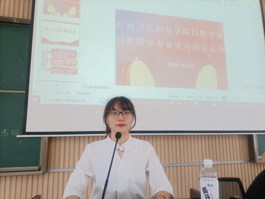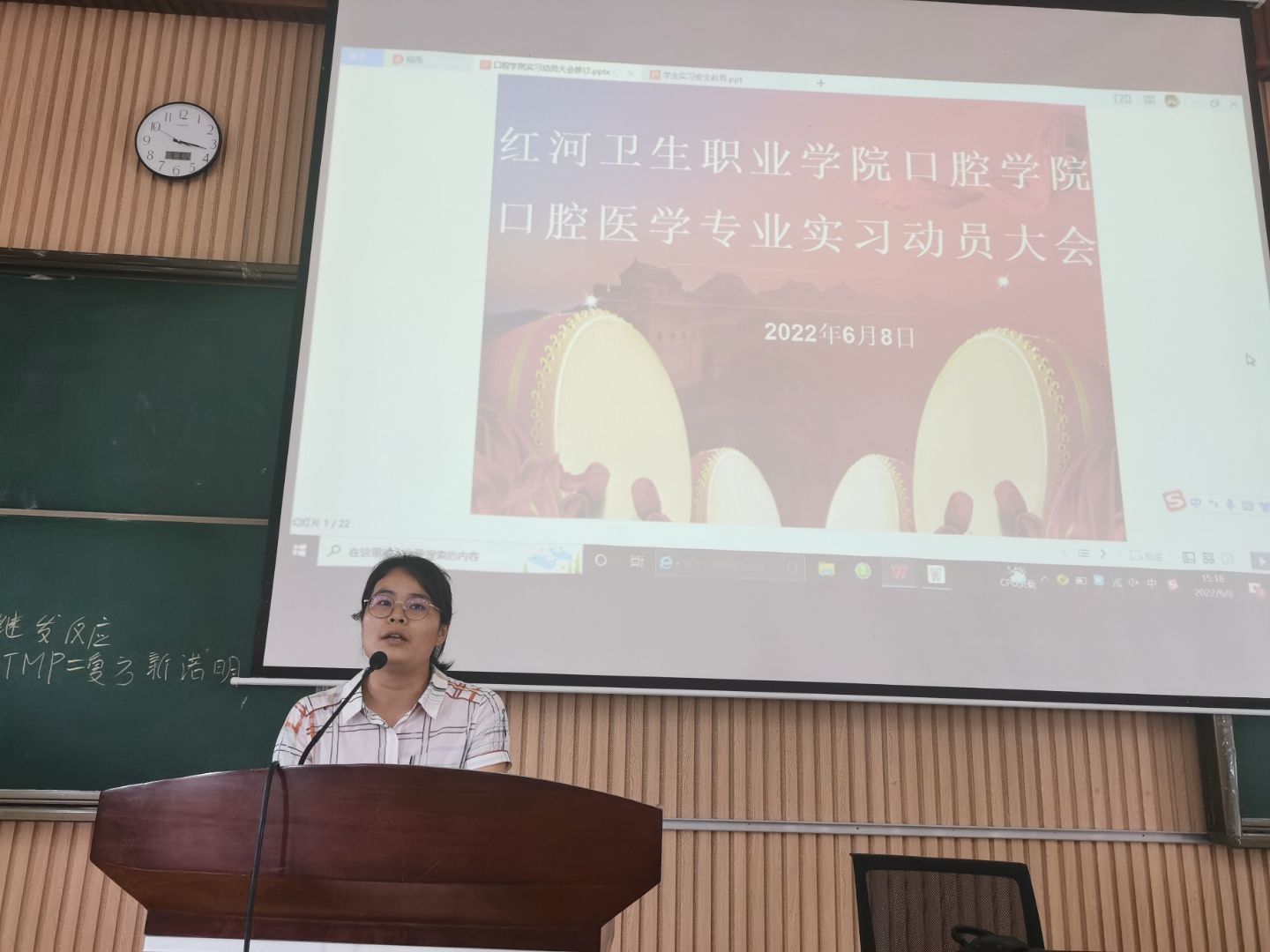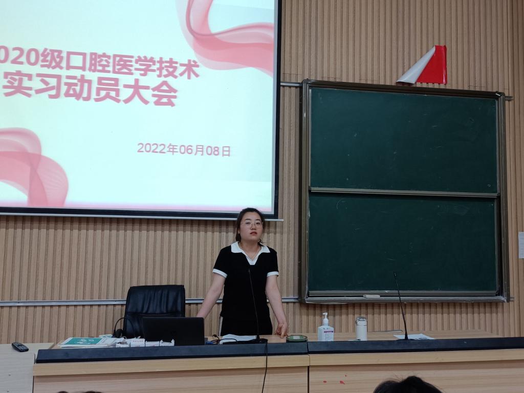 为口腔学院2020级学生适应实习环境、做好角色转变,口腔学院口腔医学专业和口腔医学技术专业于2022年6月8日在教学楼阶梯教室、图书馆大教室二召开了实习动员大会。